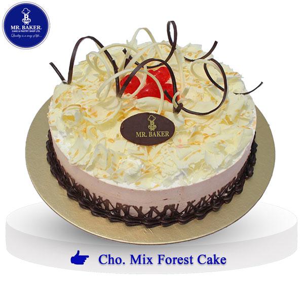This Small Size Chocolate Mix Forest Cake from Mr. Baker’s is a delightful fusion of moist chocolate sponge and rich cream, layered with a hint of vanilla and topped with a mix of chocolate shavings and cherries. A timeless favorite for chocolate lovers! Perfect for small celebrations, tea-time enjoyment, or even just a midweek treat.