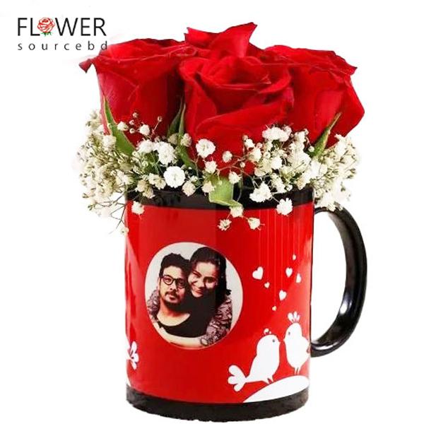 A mug that you want to give as a gift, then flowers to suit. This personalized gift is appropriate for any occasion and as corporate gift also. This mug will go with: