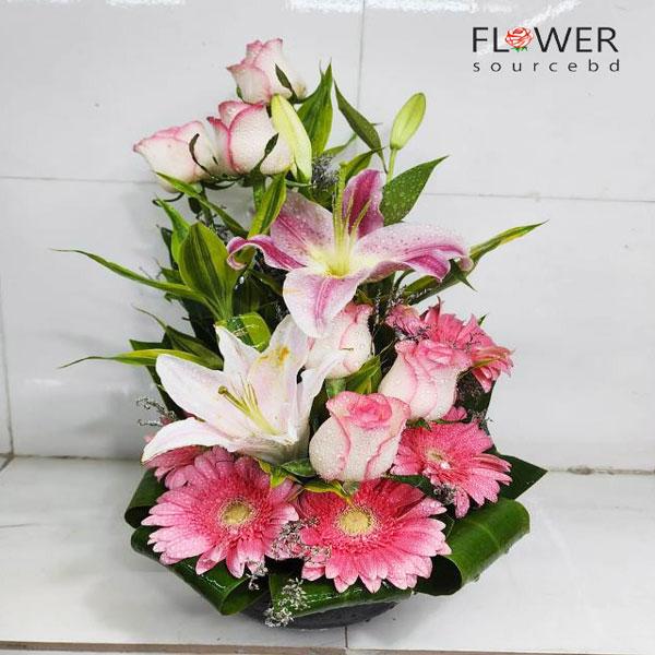 This bouquet features a beautiful combination of pink gerberas and white-pink lilies, symbolizing admiration, purity, and love in the most elegant way. Ideal for birthdays, get-well wishes, thank-you gestures, or simply celebrating someone special.
