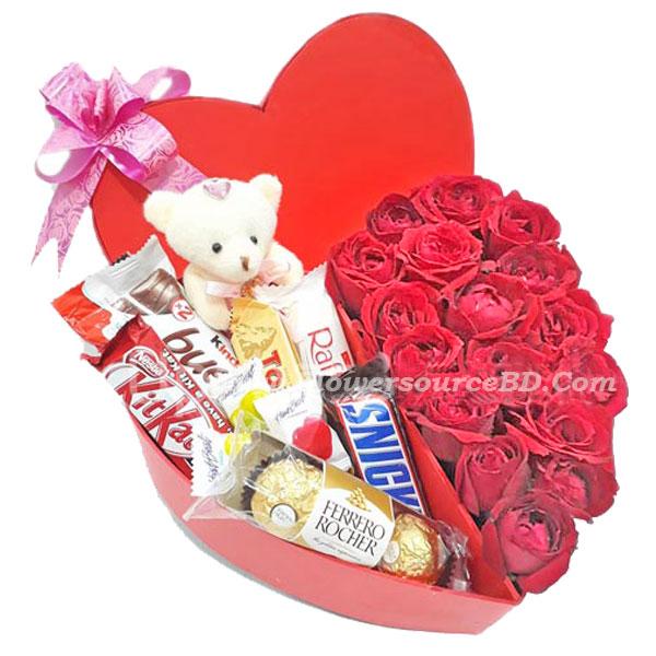 This gift package is every girl's dream as it includes roses and chocolates, girls two favorite things in one single box. Gift this package for valentine's day, anniversary, birthday or any other occasion to your loved ones. This exclusive mix of gift items will have:
