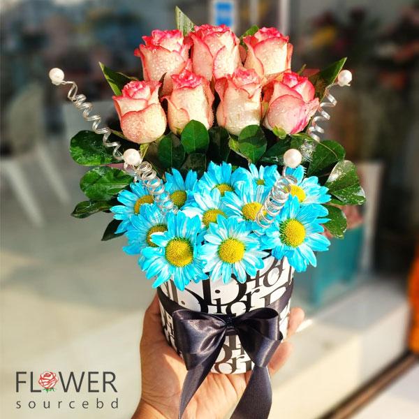 Liven up your festival with this pretty bouquet which organize shade pink Roses and wonderful Chrysanthemums. It can makes your beloved happy and joys on their special occasion. This bouquet arrange with