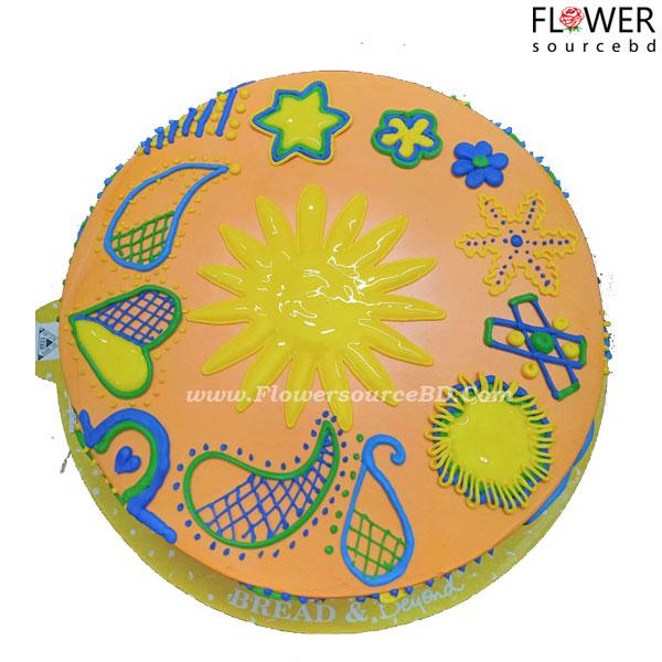 FlowersourceBD introducing premium quality special Gaye holud nokshi design cake to make your special day more festive. Round shaped cake with varity of design on top minimum weighted of 1 Kg online.