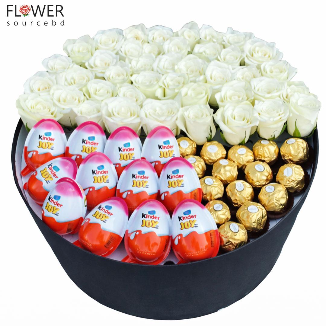 • All chocolates and flowers are nicely decorated in PVC hat box.